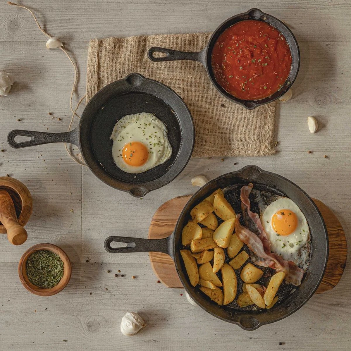 De Blackwell Koekenpannenset Gietijzer bestaat uit:
