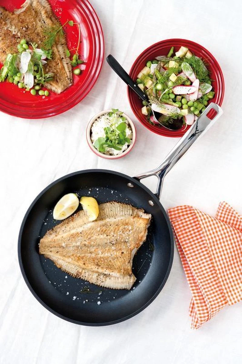 Le Creuset Koekenpan Les Forgées TNS Ø 28 cmDeze Le Creuset Koekenpan Les Forgées TNS met een diameter van 28 centimeter is perfect voor dagelijks gebruik. Deze koekenpan is geschikt om producten met eiwitten en zetmeel te bakken, zoals ei, aardappels en vlees. Voor een lekker biefstukje raden we je aan om die in een gietijzeren pan te bakken, omdat die pannen heter worden dan de Les Forgées pannen. Aan de binnenkant is deze koekenpan voorzien van de beste antiaanbaklaag ooit. Deze antiaanbaklaag kan alle vormen van bakken aan, zelfs zonder vet of olie. De geharde laag laat voedsel eenvoudig los, waardoor de pan gemakkelijk schoon te maken is.