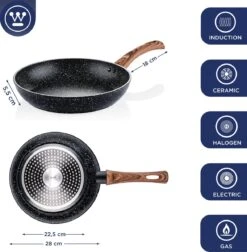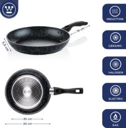 Westinghouse Koekenpan Inductie – Ø 24 Cm – Zwart Marmer – Geschikt Voor Alle Warmtebronnen