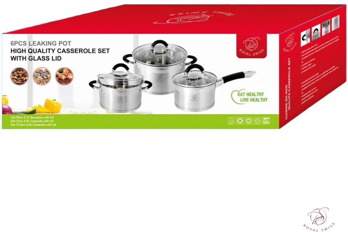 Deze mooie pannen van Royal Swiss zorgen voor een stijlvolle keuken. De glazen deksels met koudgrepen maken deze stijlvolle look helemaal af. Naast hun mooie uiterlijk, zijn de pannen ook nog eens erg praktisch. Ze gaan dankzij het roestvrije staal jarenlang met je mee en omdat ze krasbestendig zijn, blijven ze nog lang hun mooie looks behouden. Ben je bovendien klaar met koken, maar heb je geen zin in de afwas? Dan kun je de pannen gewoon kwijt in de vaatwasser.