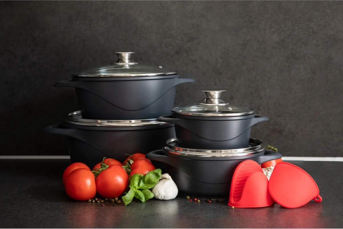 Deze prachtige pannenset van het merk Smile geeft iedere keuken een upgrade. De pannen zijn namelijk geschikt voor iedere kookplaat, waaronder inductie, gas en elektrisch. Ook wanneer jij switcht van huis of keuken kun jij deze pannen dus gewoon blijven gebruiken. Het zwarte materiaal en de glazen deksels zorgen voor een luxe en stijlvolle uitstraling, welke kleur jouw keuken ook is. Naast het mooie uiterlijk zijn de pannen ook nog eens van topkwaliteit; ze zijn allen voorzien van een anti-aanbaklaag, roestvrij stalen knoppen en dikke wanden voor een gelijkmatige warmteverdeling. De perfecte pannenset dus om in te koken, frituren, stoven óf braden.